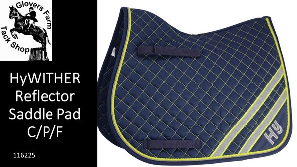 Maximise your visibility when riding out on the roads with the Reflector Saddle Pad. Featuring two reflective stripes and reflective piping along with fluorescent feature binding and stitching on a ¾” diamond pattern. A saddle pad that offers excellent fit with the high withered, clear spine design. Machine washable.