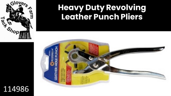 Revolving leather hole punch tool. Spring loaded for easy punch. Pivoting jaw ends Auto-Release features ergonomic handles punches neat holes in leather & other soft materials. Hole punch is made of heat treated drop forged steel. The handle has a textured finish for a secure grip. The hole punch has interchangeable punch heads Punches clean neat holes in leather and other soft materials. Suitable for rubber , leather, plastic, vinyl, gaskets, b elts, watch straps and many other soft materials. Heavy Duty Leather Hole Punch 6 Hole Sizes: 2.5mm, 3mm, 3.5mm, 4mm, 4.5mm and 5mm.