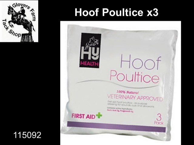 100% Natural, veterinary approved, first aid hoof poultice - All purpose dressing designed to fit your horse's hoof, reducing preparation time - to treat wounds, cuts and abrasions. Can be applied hot, cold or dry.