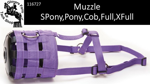 This nylon muzzle slows the horse's grazing. Featuring a rubber base, Velcro closure headpiece and clip throat lash for easy fitting and to keep the muzzle in place.