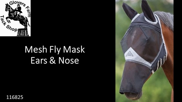 The Rhinegold fly mask with ear and nose coverage provides an effective barrier from flies as the material is a fine mesh with double darted stitching across the eyes so that the mask sits away from the horse's eyes and does not cause any irritation in this area due to its firm structure. Features soft fleece binding and wide Touch tape closure under jaw. The long nose design offers protection from direct sunlight, helping to prevent sunburn. The cap area at the poll has two mesh ears that allow the ears to breathe and not become too hot, and it also has a hole in the centre to allow the forelock to pass through.