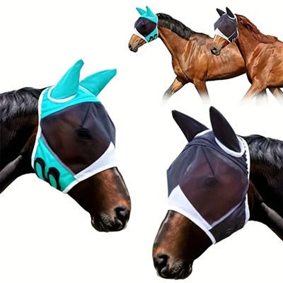 Horse Fly Mask - UV Protection, Breathable Mesh, Adjustable Fit s m L Sizes, Insect Prevention, Eye Protection for Horses, Polyester Fiber, Horse Fly Mask