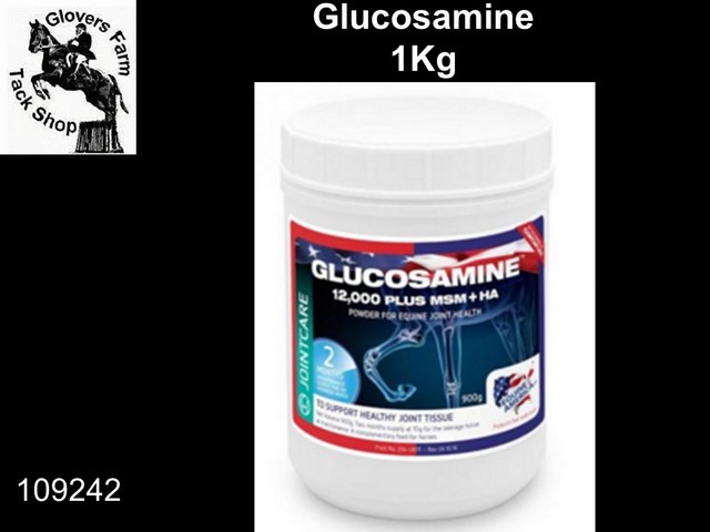 Equine America Glucosamine 12000 HCl Extra Strength Powder. 25% Stronger than our recent formula. The Glucosamine 12000 HCl is fortified with Hyaluronic Acid and MSM for added joint protection.