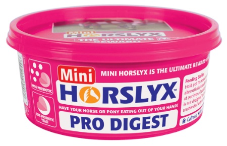 Horslyx Pro Digest Balancer contains a combination of ingredients to support the digestive system from the stomach to the hindgut while licking produces saliva which also supports the digestive system. Slippery Elm and Seaweed Meal are included as a source of mucilage while a prebiotic supports beneficial gut bacteria and a live probiotic yeast helps provide a buffering action in the hindgut. With increased magnesium levels and a low starch content Horslyx Pro Digest Balancer is suitable for any horse but is especially aimed at those prone to digestive upsets. A spiced apple flavouring is included to tempt fussy feeders and the high specification Balancer package includes the full spectrum of vitamins, minerals and trace elements require to balance the deficiencies in forage and grazing. .