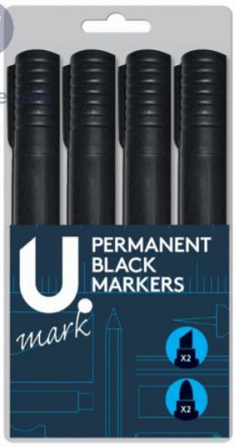 Ideal for warehousing, school or the office, the U. Black Permanent Markers includes two chisel tip and bullet tip designs for marking tasks.