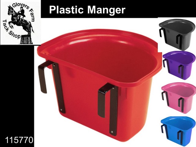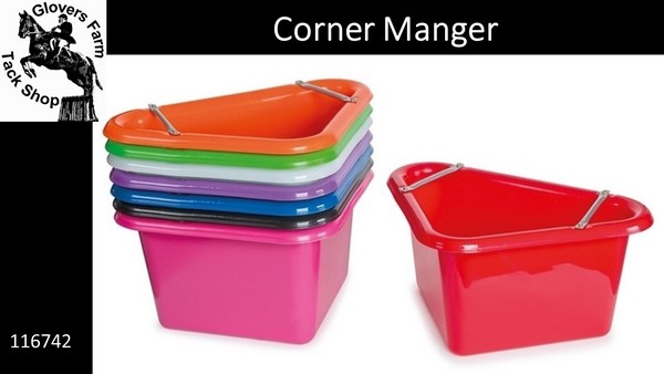 Sturdy corner manger for feeding at any height in the stable. Use with the support frame (supplied separately) to be able to easily remove the manger for cleaning. Complete with anti-waste bars. Frost proof.