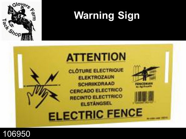 The Fenceman Warning Sign is a durable, yellow plastic warning sign suitable for any electrical fencing system. It can be fixed quickly and easily to the fence and it is particularly useful in areas where the public have access.