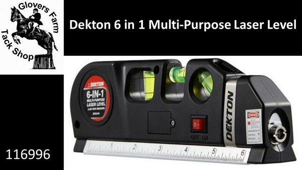 The Dekton Multi-Purpose Laser Level is a high quality des ign that projects horizontal, vertical or pin-point laser light beams to assist with hanging shelves or cabinets, tiles or picture frames. With three vials, tradesmen can perfect levels and measure anything with the 15cm imperial and metric ruler and 2.5m tape measure.