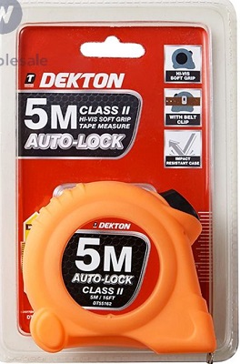 Providing excellent performance during various DIY tasks, the Dekton Class II Tape Measure features an impact-resistant case with hi-vis soft grip. Offering imperial or metric markings, this 5m quality Tape Measure includes a belt-clip for securing to DIY belts and clothing