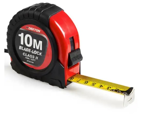 DEKTON 10 METRE 33 FEET HARD CASE TAPE MEASURE WITH RUBBER GRIP.